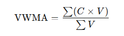 VWMA는 일정 기간 동안의 가격 데이터를 바탕으로, 각 가격에 해당하는 거래량을 가중치로 부여한 평균값입니다. 거래량이 높은 가격일수록 VWMA에 더 큰 영향을 미칩니다.
